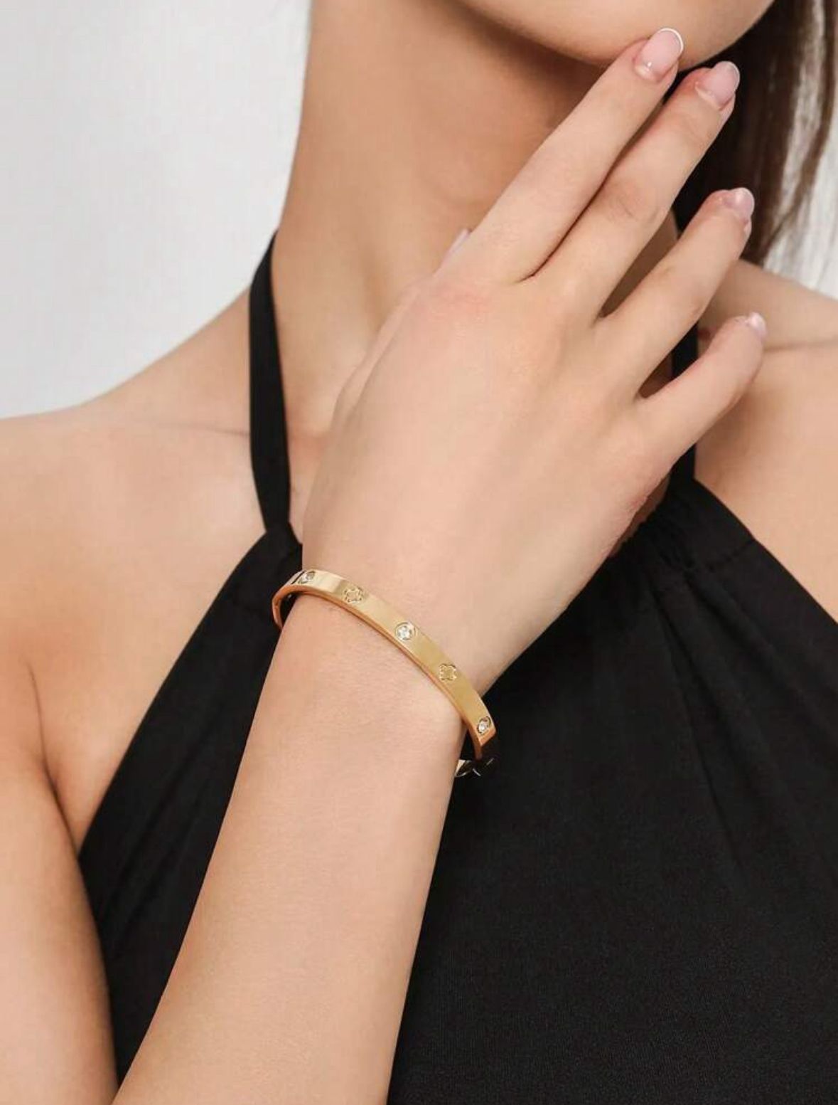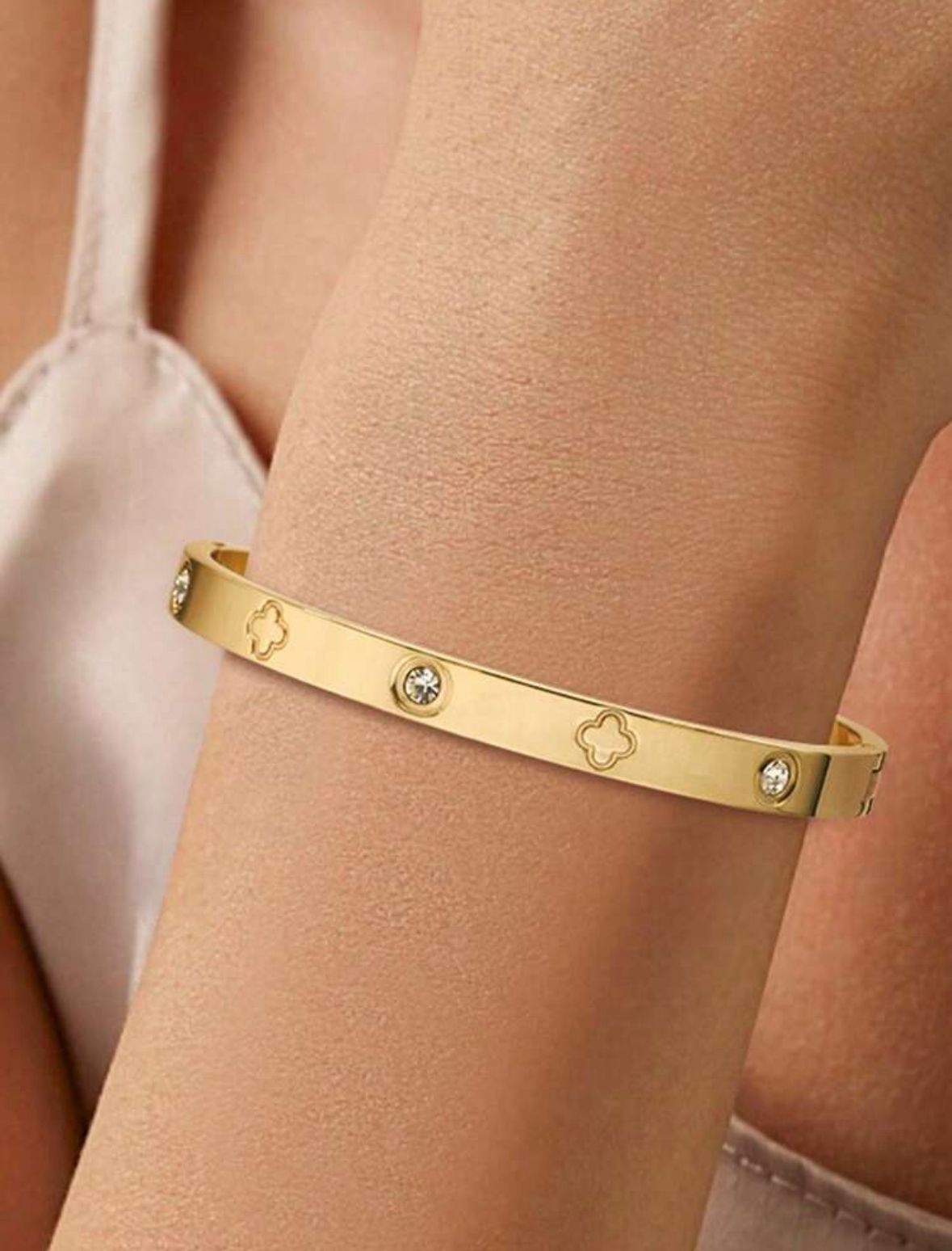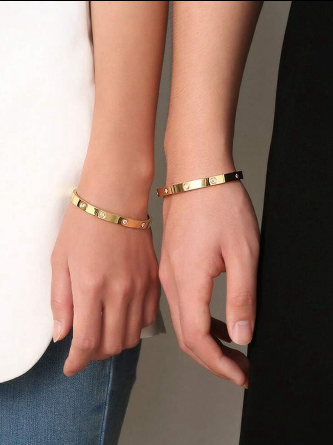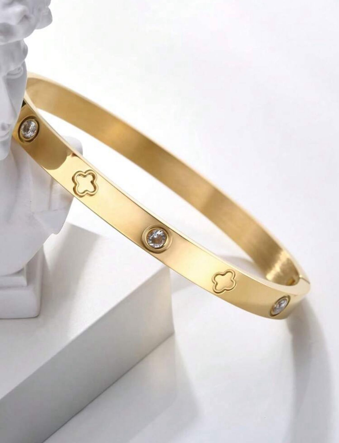 Brazaletes grueso con piedras dorado