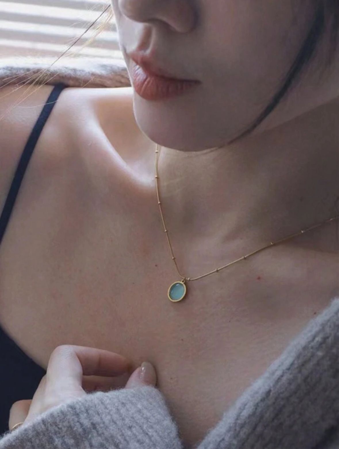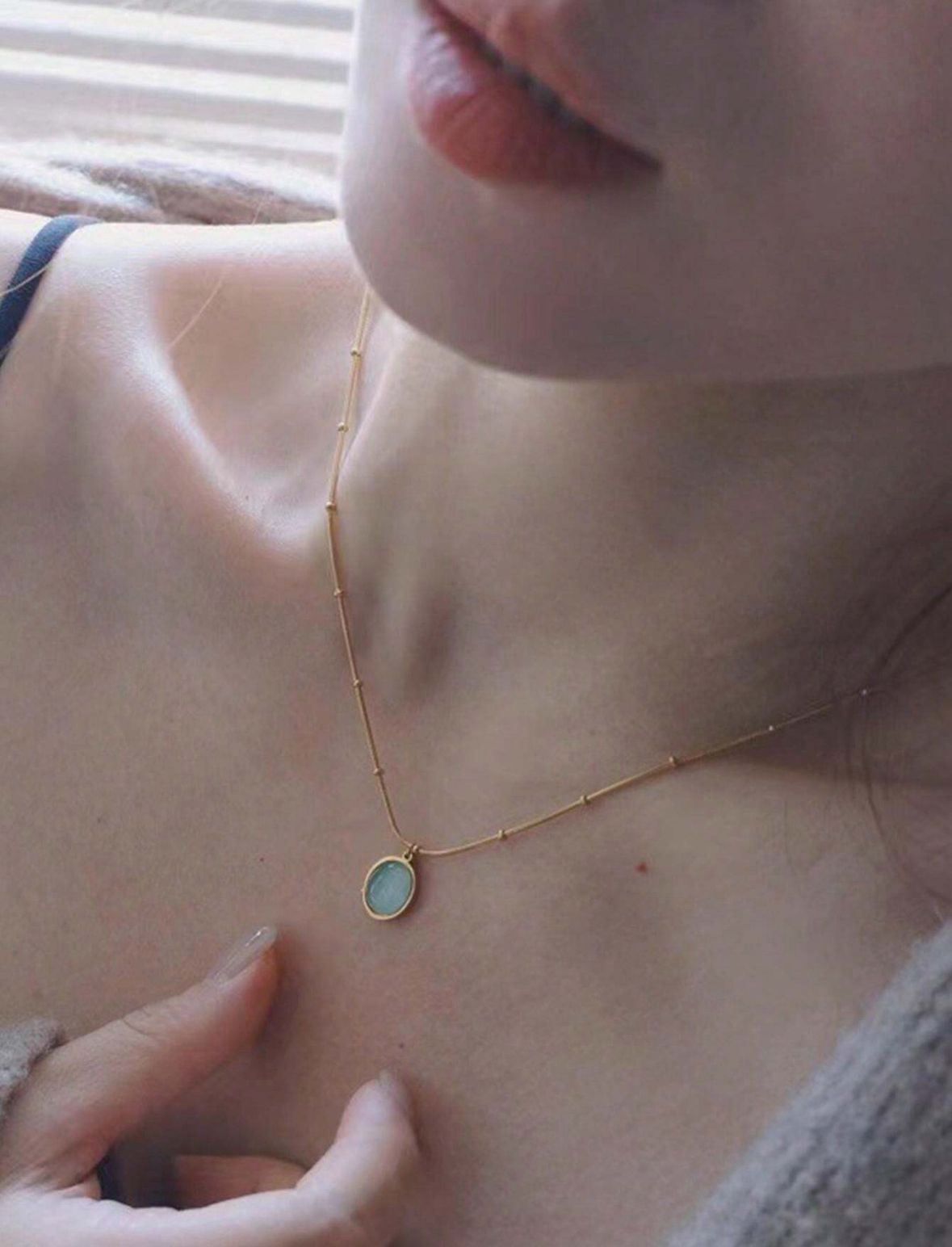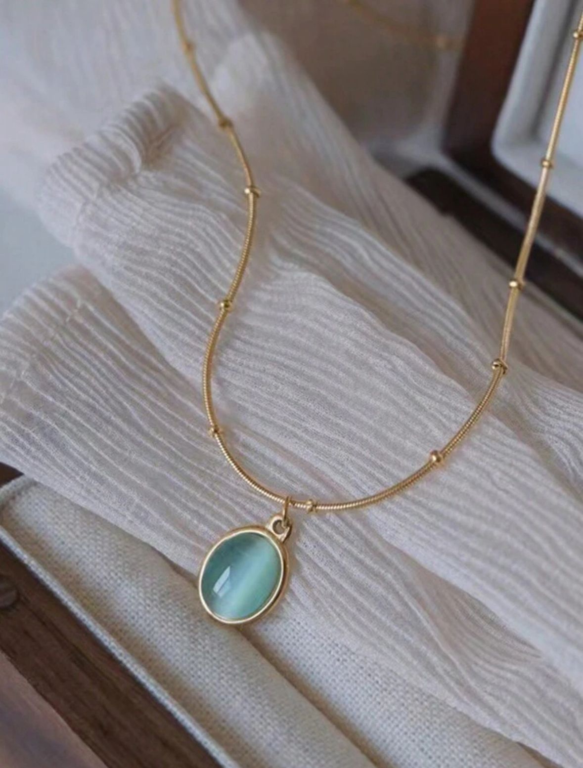 COLLAR CON PIEDRA COLOR ESMERALDA