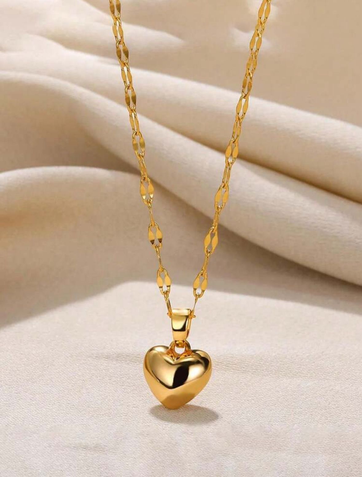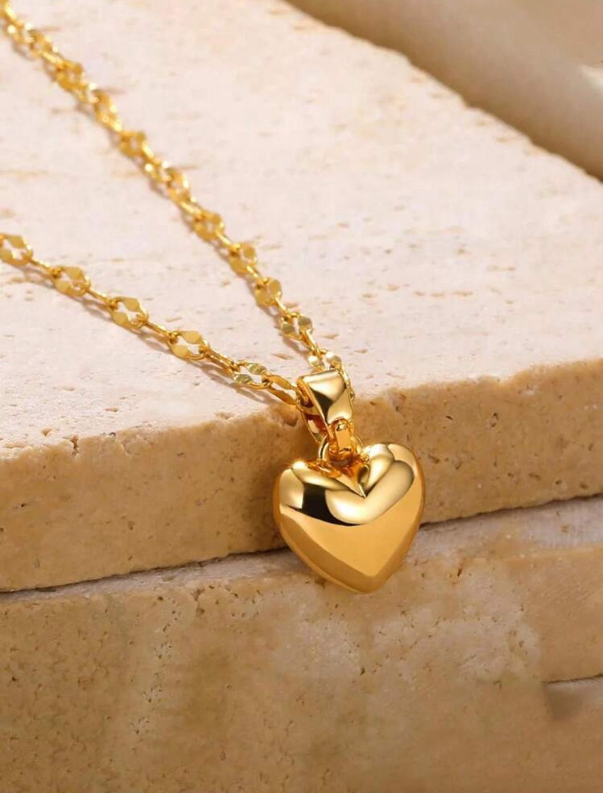 COLLAR CORAZON CON CADENA GRUESA DORADO