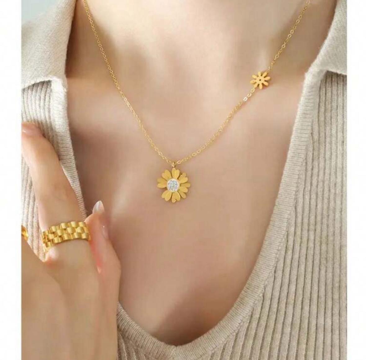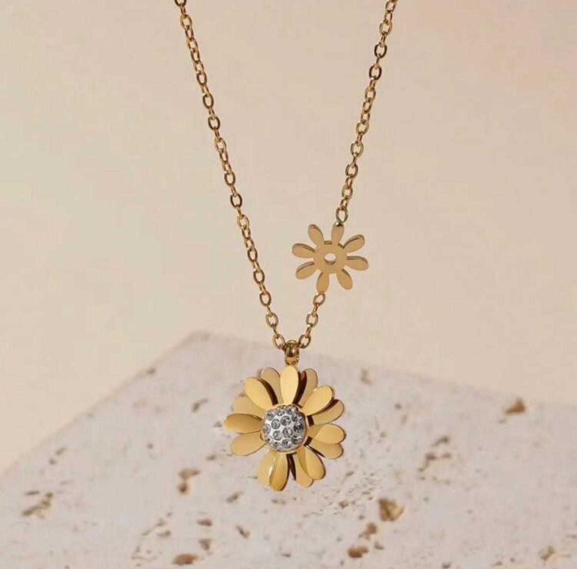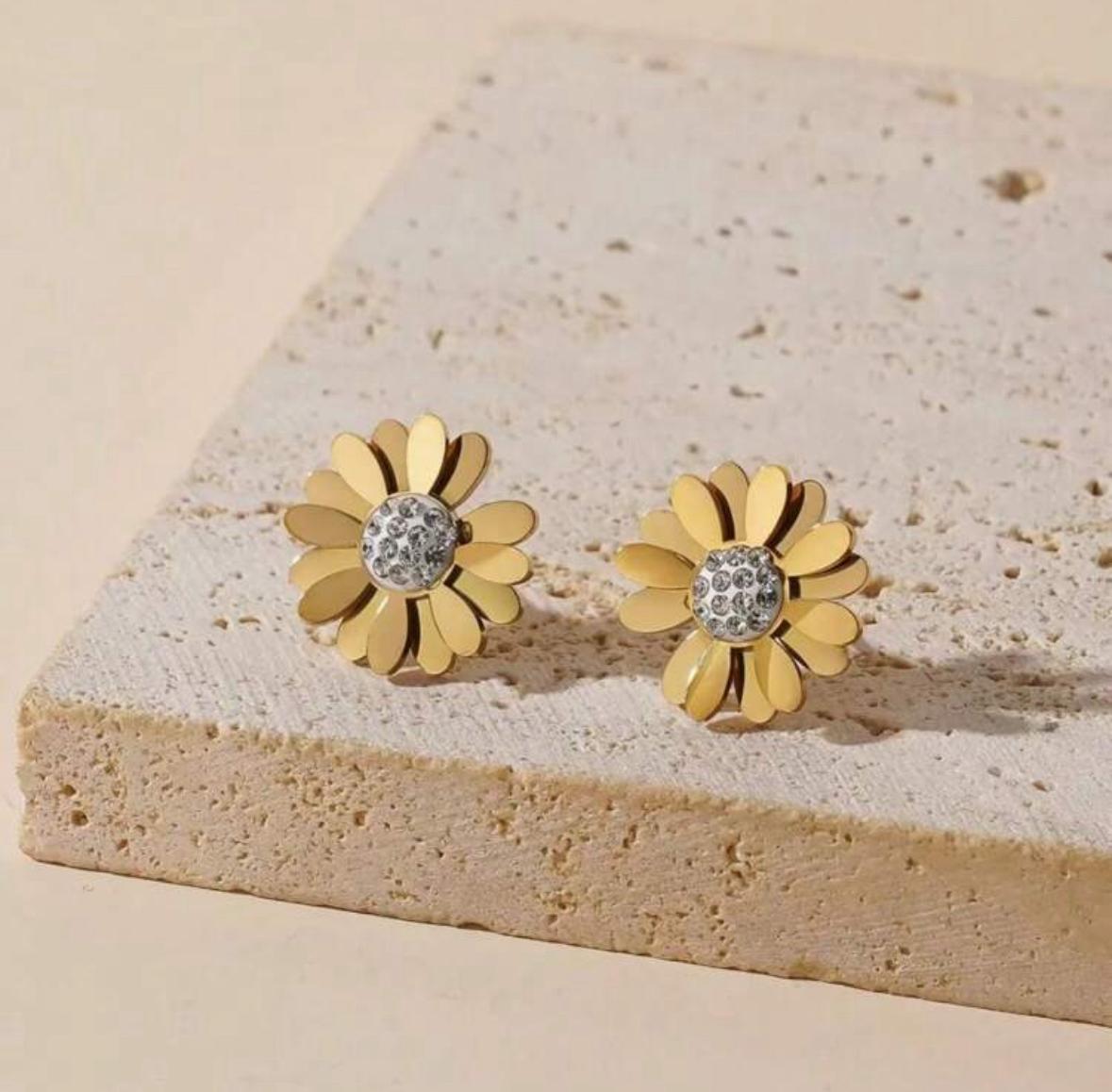 Duo de Aretes + Collar en forma de FLOR MARGARITA