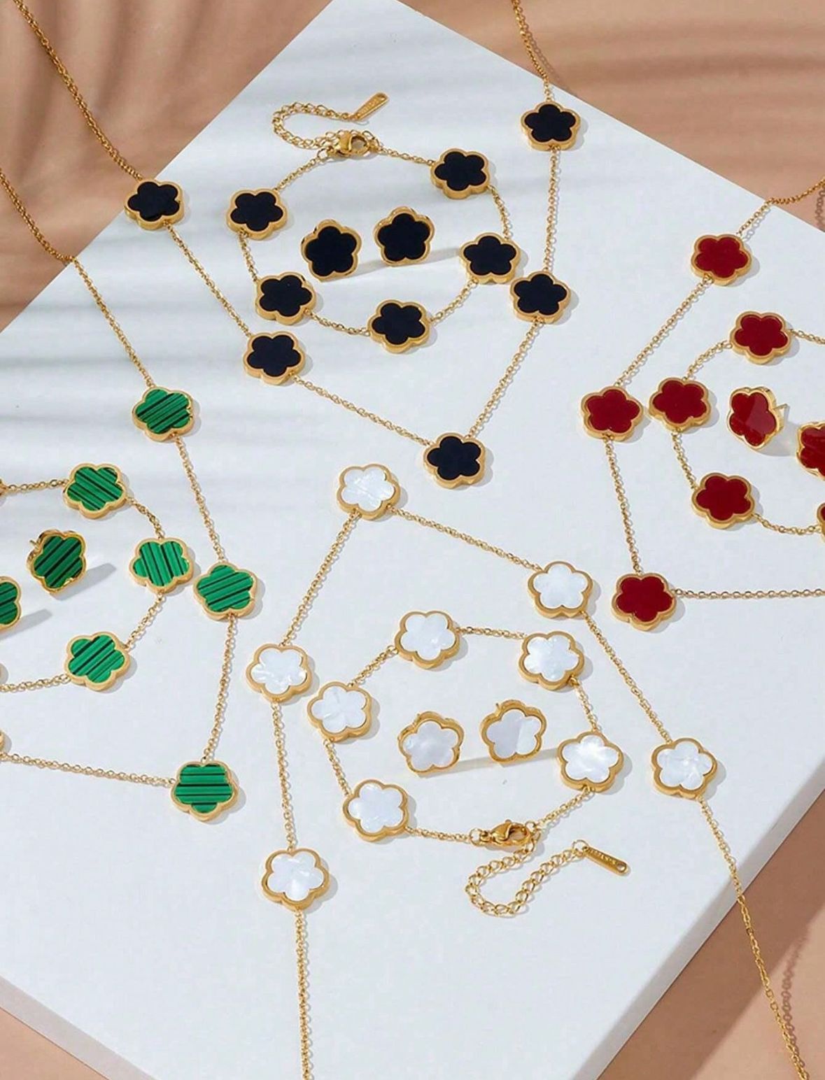 Juego de Collar + Aretes + Pulsera tipo VAN CLEEF VERDE