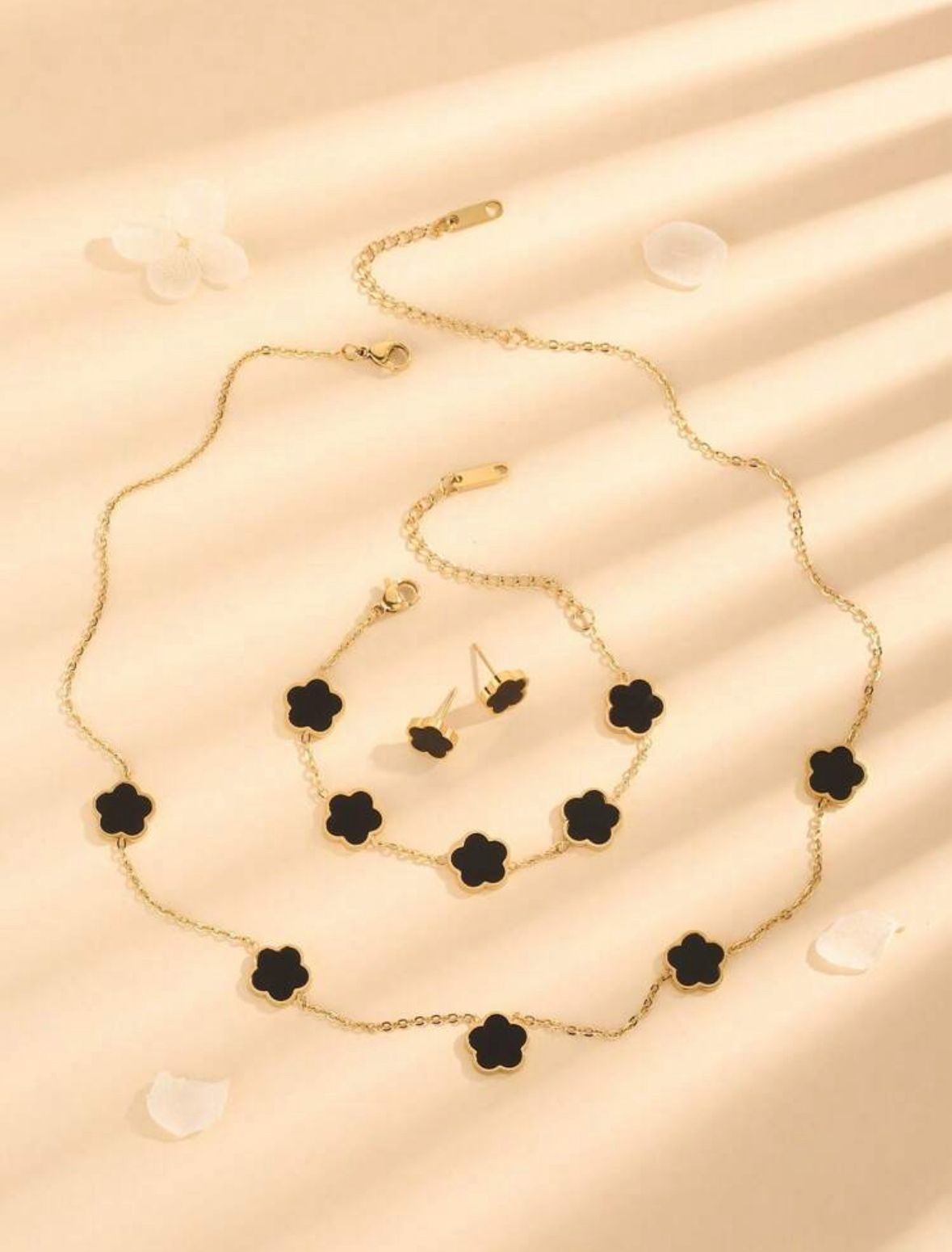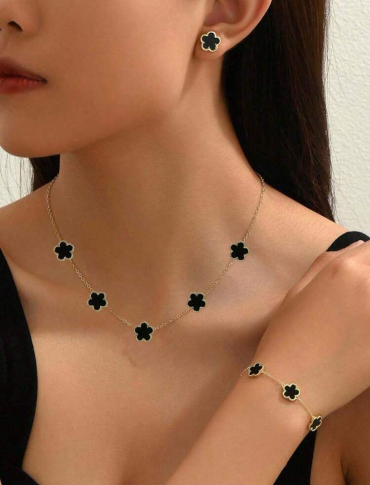 Trio de collar + Pulsera +Aretes VAN CLEEF NEGRO